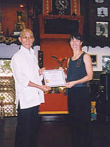 Peta Johnson has been a Wah Lum Kung Fu practitioner since 1991. She began her Kung Fu practice after finishing her university schooling, which included a BSc from Brown University in 1982, a Master’s degree from Tufts University in 1987, and her Doctorate in Psychology in 1991. She became certified to the Instructor Level in Wah Lum Kung Fu in 1998, Sifu Level in 2002, and now teaches Wah Lum Kung Fu, Yang Tai Chi, and Qigong at her school in Baar, Switzerland.